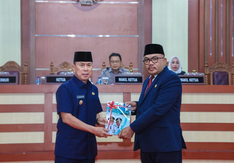 HarianPublik.id,Kendari – Gubernur Sulawesi Tenggara (Sultra), Andi Sumangerukka, menyerahkan dokumen dan penjelasan Gubernur atas Rancangan Peraturan Daerah Tentang Rencana Pembangunan Jangka Menengah Daerah (RPJMD) Provinsi Sulawesi Tenggara Tahun 2025 – 2029 dalam rapat paripurna DPRD Sultra, pada Selasa (15/7/2025).
