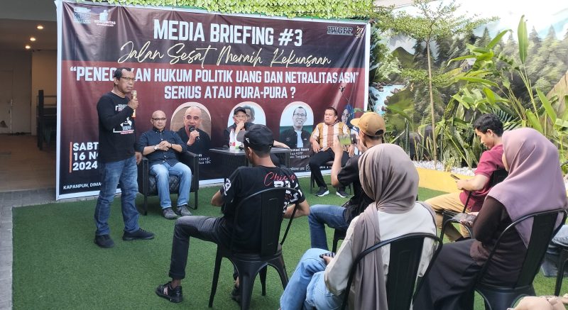 HarianPublik.id,Kendari – Komite Independent Pemantau Pemilu Indonesia (KPPI) Sulawesi Tenggara (Sultra) bersama komunitas pemilu bersih kembali menggelar Media Briefing, dengan tema Jalan Sesat Meraih Kekuasan, Penegakan Hukum Politik Uang dan Netralitas ASN, yang berlangsung di salah satu warkop di Kota Kendari, pada Sabtu (16/11/2024.