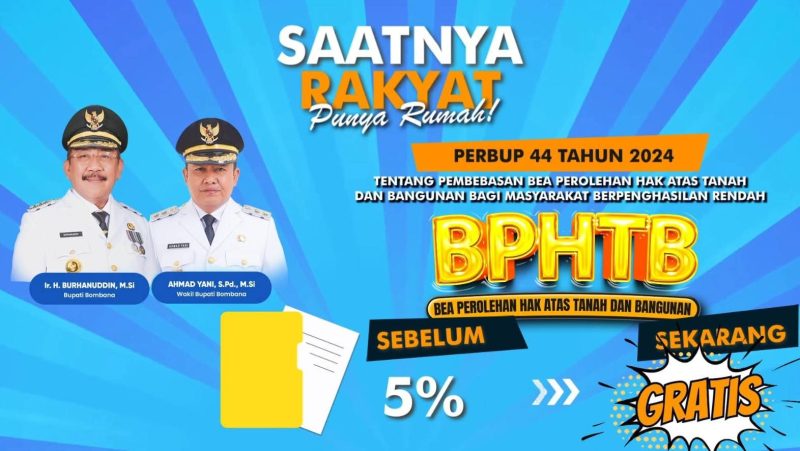 Harianpublik.id,Bombana – Harapan masyarakat berpenghasilan rendah (MBR) untuk memiliki rumah kini semakin terbuka lebar. Pemerintah Kabupaten Bombana resmi memberlakukan kebijakan pembebasan Bea Perolehan Hak atas Tanah dan Bangunan (BPHTB) melalui Peraturan Bupati Nomor 44 Tahun 2024.