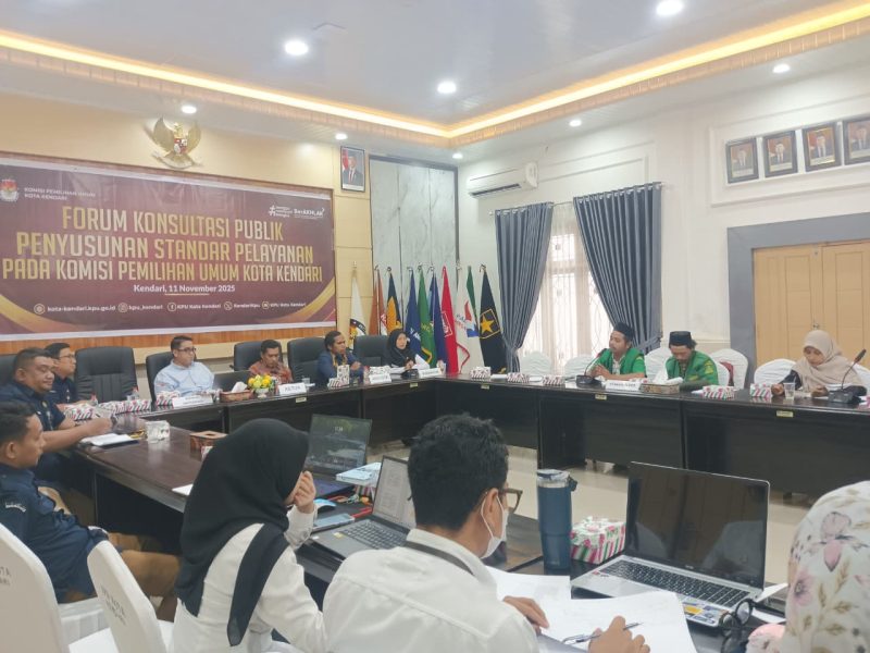 HarianPublik.id,Kendari – Komisi Pemilihan Umum (KPU) Kota Kendari menggelar Forum Konsultasi Publik (FKP) dalam rangka penyusunan standar pelayanan publik di lingkungan KPU. Kegiatan ini berlangsung di Aula Kantor KPU Kota Kendari, pada Selasa (11/11/2025).