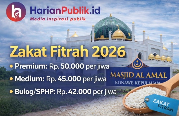 Harianpublik.id,Konawe Kepulauan – Menyambut bulan suci Ramadan 1447 Hijriah/2026 Masehi, Pemerintah Kabupaten Konawe Kepulauan (Konkep) bersama sejumlah lembaga keagamaan resmi menetapkan besaran zakat fitrah bagi masyarakat.